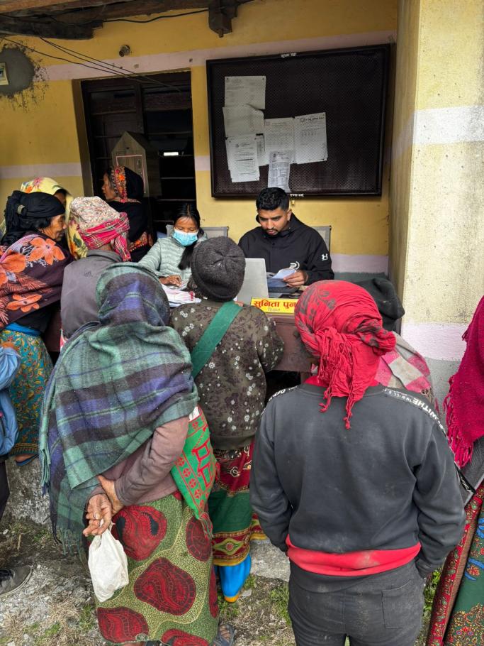 मिति २०८२/१२/२३ गते देखि २८ गते सम्म ८ वटै वडाहरुमा तेस्रो त्रैमासिक सामाजिक सुरक्षा भत्ता वितरण कार्यक्रम सम्पन्न गरियो | भत्ता वितरण गर्दै गरेका केहि तस्बिरहरु l