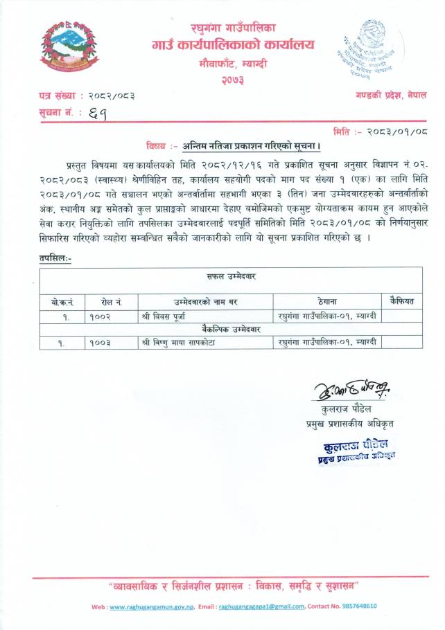 अन्तिम नतिजा प्रकाशन गरिएको सम्बन्धी सूचना ।