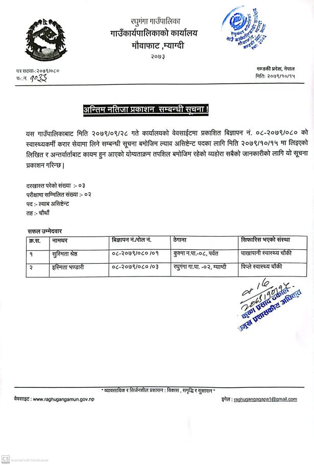 अन्तिम नतिजा प्रकाशन सम्बन्धि सूचना l