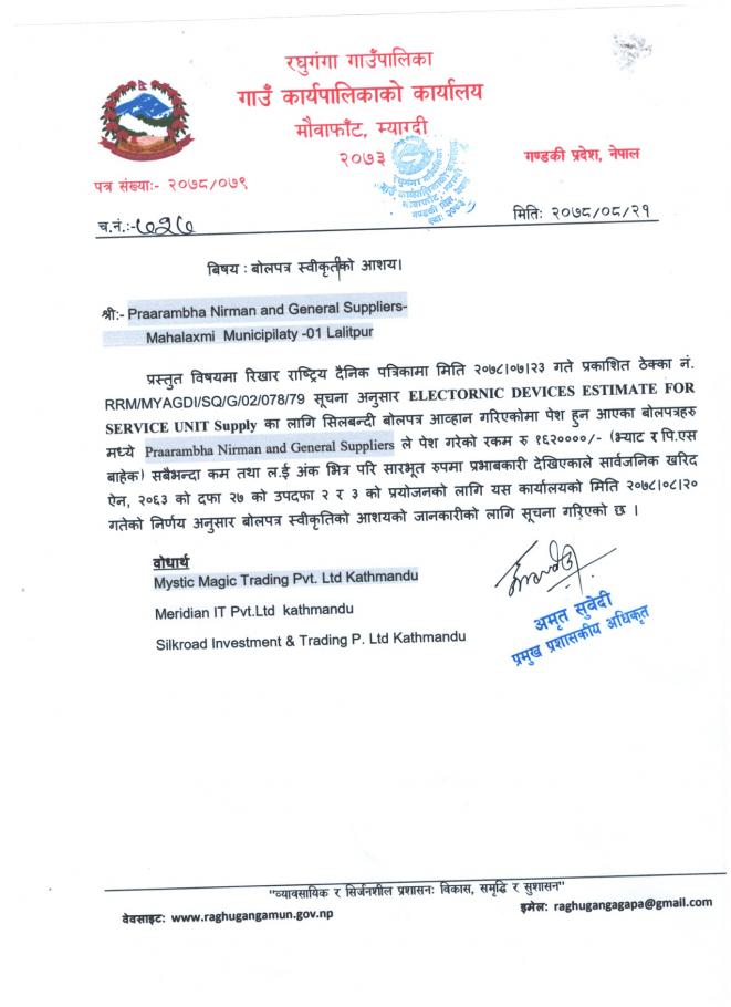 आशय स्विकृतिको सूचना ।