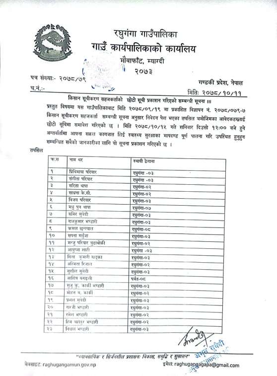 raghugangagapa1@gmail.com, info@raghugangamun.gov.np