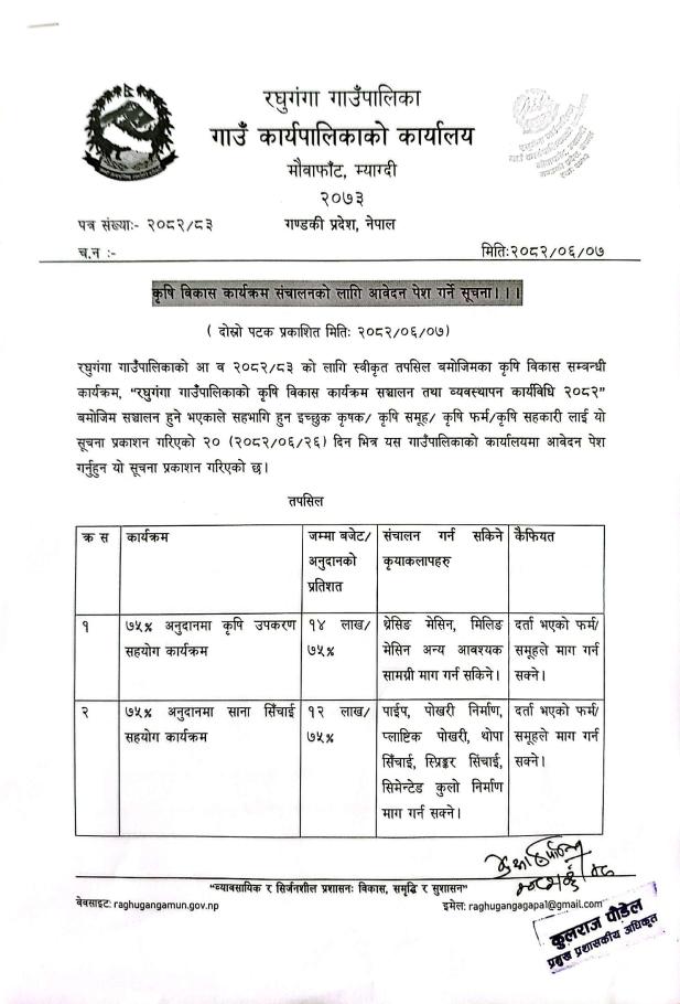 raghugangagapa1@gmail.com, info@raghugangamun.gov.np