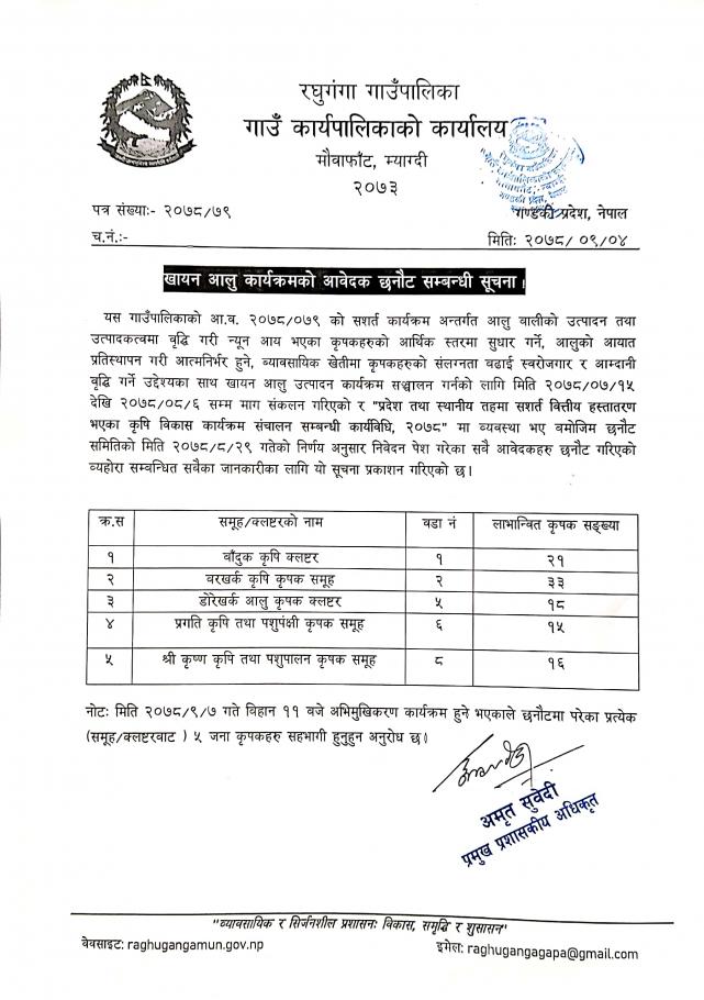 » खायन आलु कार्यक्रमको आवेदन छनौट सम्बन्धी सूचना l