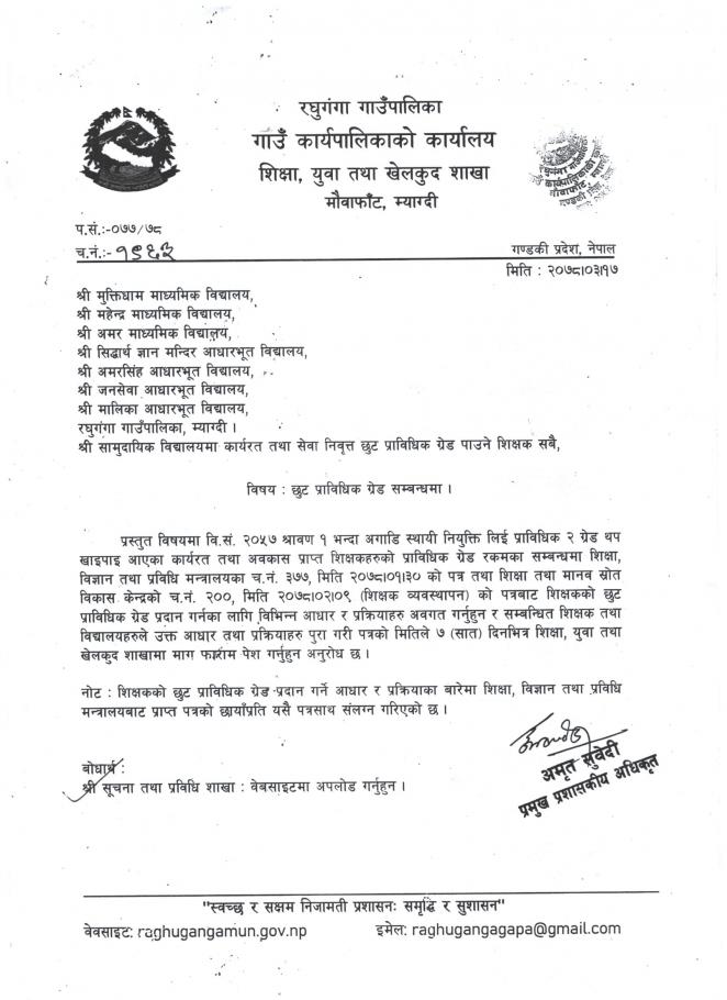 छुट प्राबिधिक ग्रेड सम्बन्धमा l
