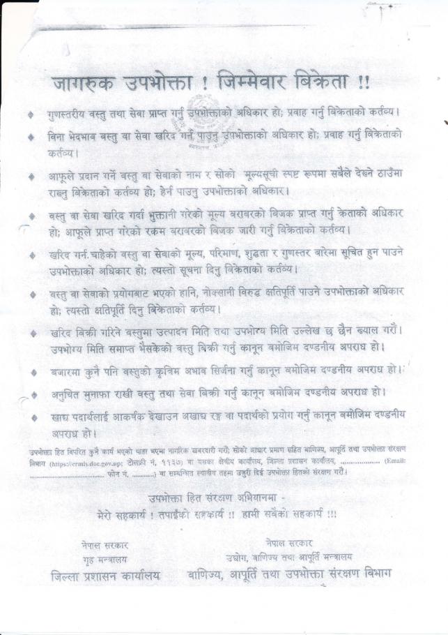 ''जागरुक उपभोक्ता ,जिम्मेवार बिक्रेता '' अभियान आवउद्धता सम्बन्धी सूचना l
