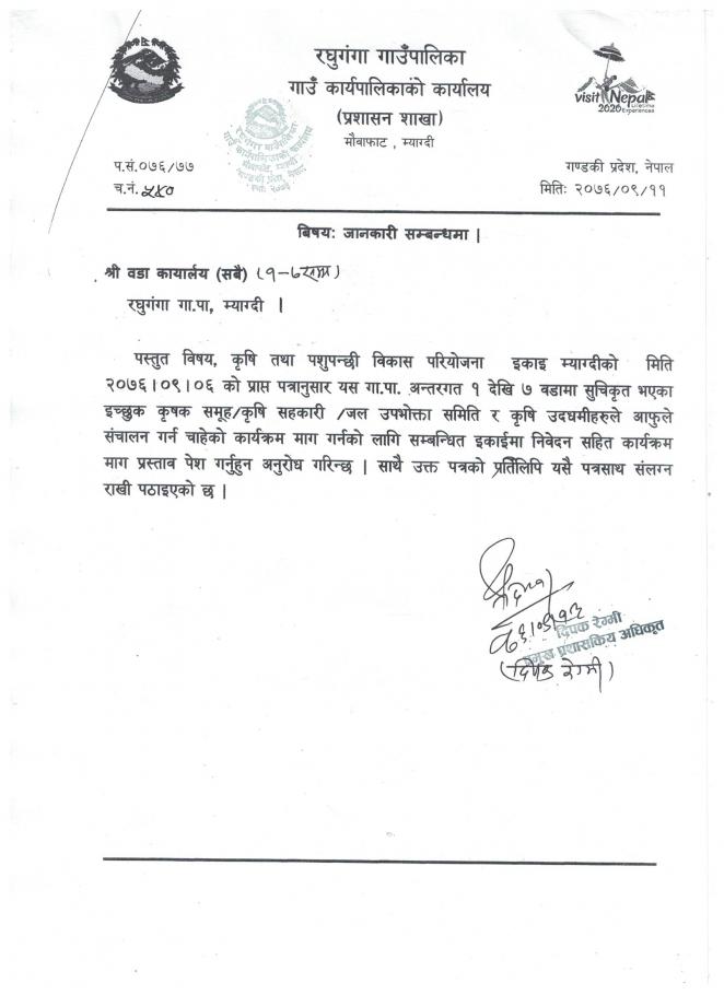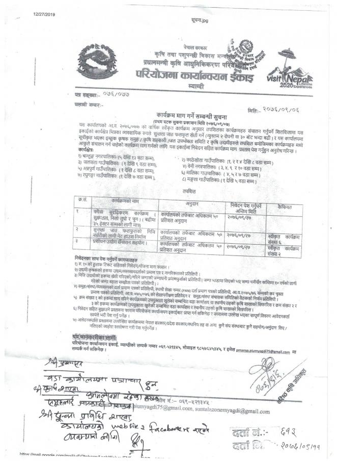 कृषि विकास कार्यक्रम संचालनको लागि आवेदन पेश गर्ने सूचना ।। (दोस्रो पटक प्रकाशित )