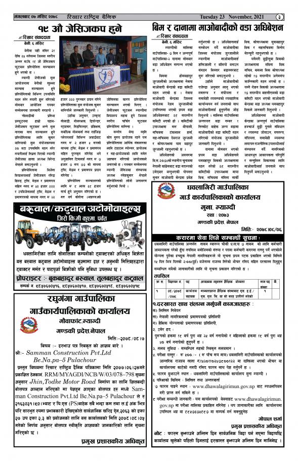 झिँ टाेड्के माेटरबाटाे निर्माणका लागि बाेलपत्र स्वीकृतिकाे आशयकाे सुचना l