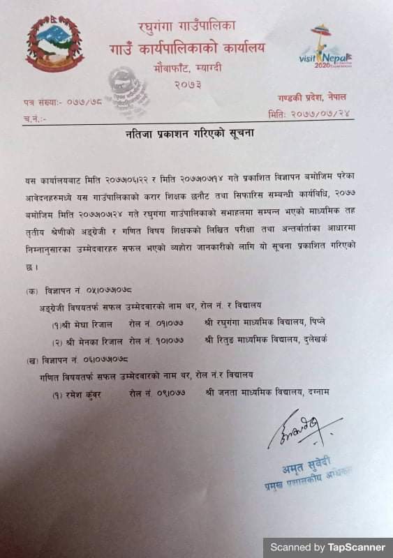 नतिजा प्रकाशन गरिएको सम्बन्धी सूचना