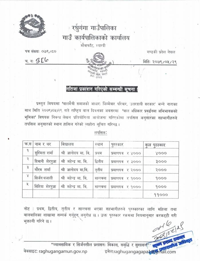 नतिजा प्रकाशन गरिएको सम्बन्धी सूचना ।