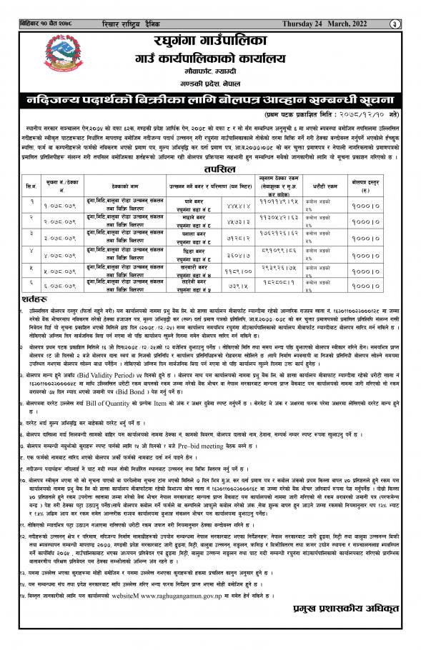 » नदिजन्य पदार्थको विक्रिको लागि बोलपत्र आव्हान सम्बन्धी सूचना ।