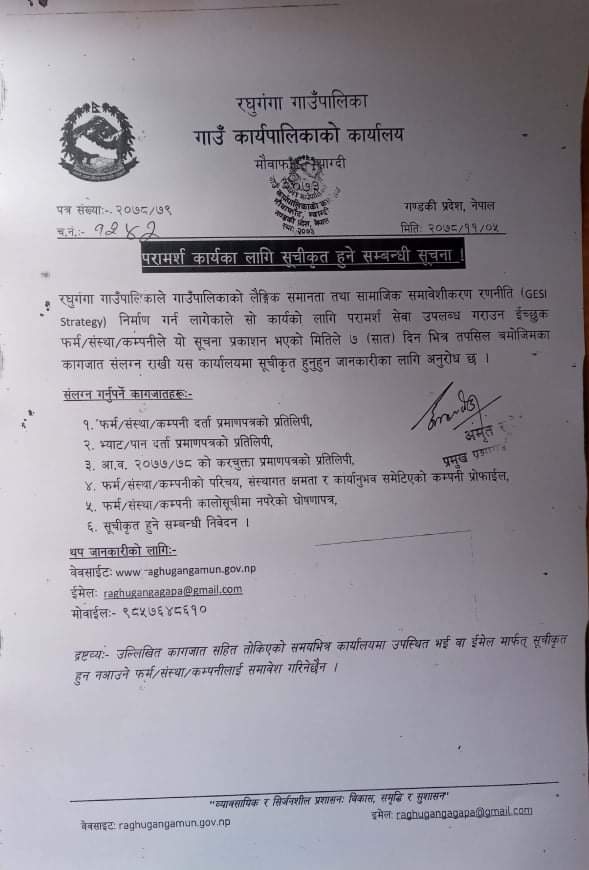 raghugangagapa1@gmail.com, info@raghugangamun.gov.np