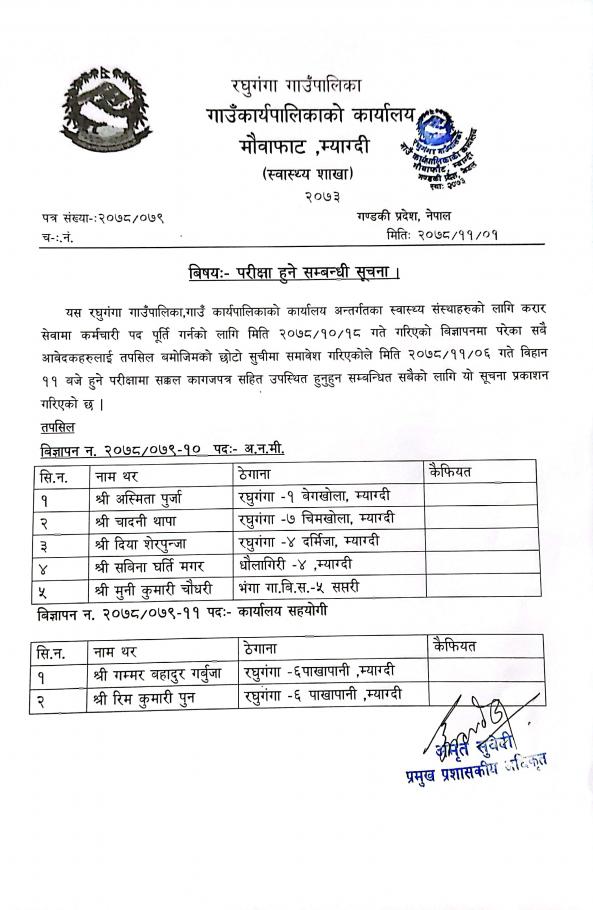 सेवा करारमा कार्यालय सहयोगी पदपूर्ती गर्ने सम्बन्धी सूचना ।।।