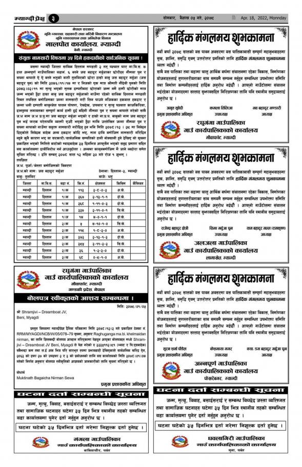 नदिजन्य पदार्थ उत्खनन् गरी विक्री वितरण तथा आन्तरिक निकासी गर्ने कार्यको शिलबन्दी बोलपत्र आव्हान सम्बन्धी दोस्रो पटक प्रकाशित सूचना !!!