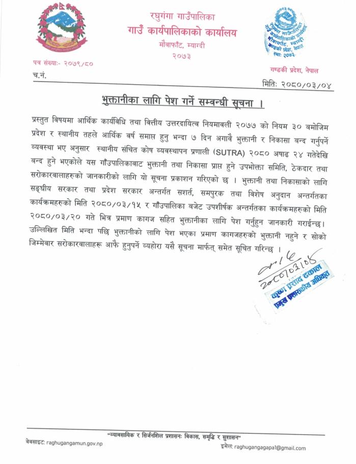 भुक्तानीका लागि पेश गर्ने सम्बन्धी सूचना !!