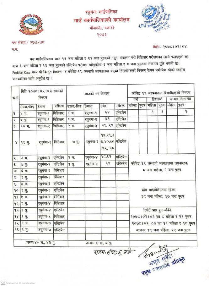 मिति २०७८/०२/०४ सम्मकाे संक्रमित विवरण l