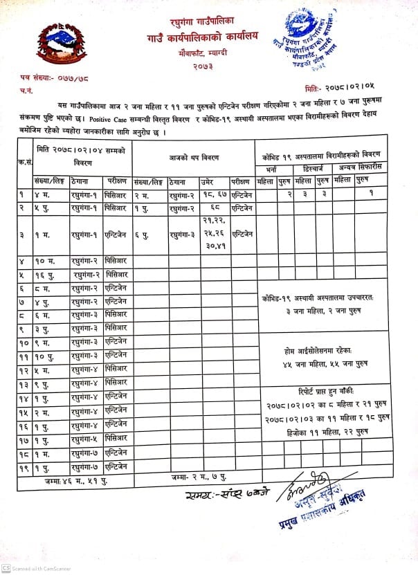 मिति २०७८/०२/०५ सम्मकाे संक्रमित विवरण l