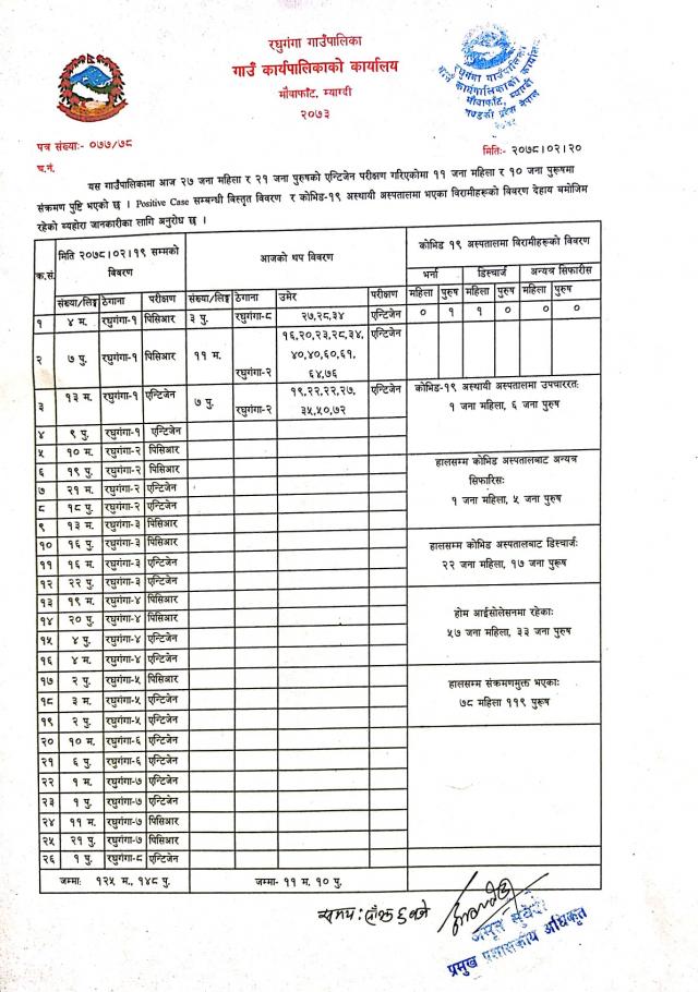 मिति २०७८/०२/२० सम्मको कोभिड-१९ संक्रमितहरूको विवरण l