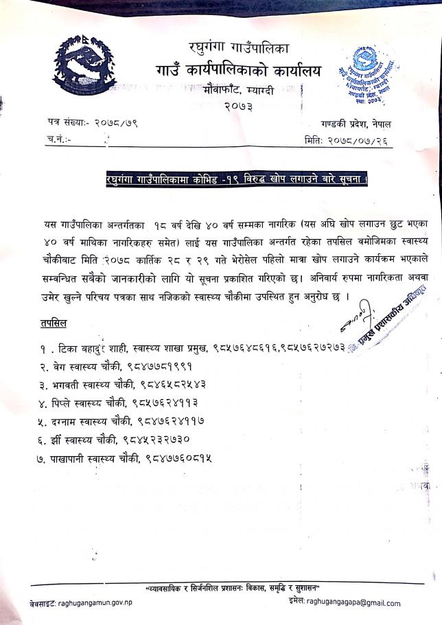रघुगंगा गाउँपालिकामा कोभिड -१९ विरुद्ध खोप लगाउने बारे सूचना l