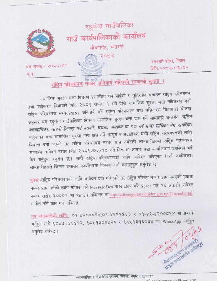 » राष्ट्रिय परिचयपत्र नम्बर अनिवार्य गरिएको सम्बन्धी सूचना ।