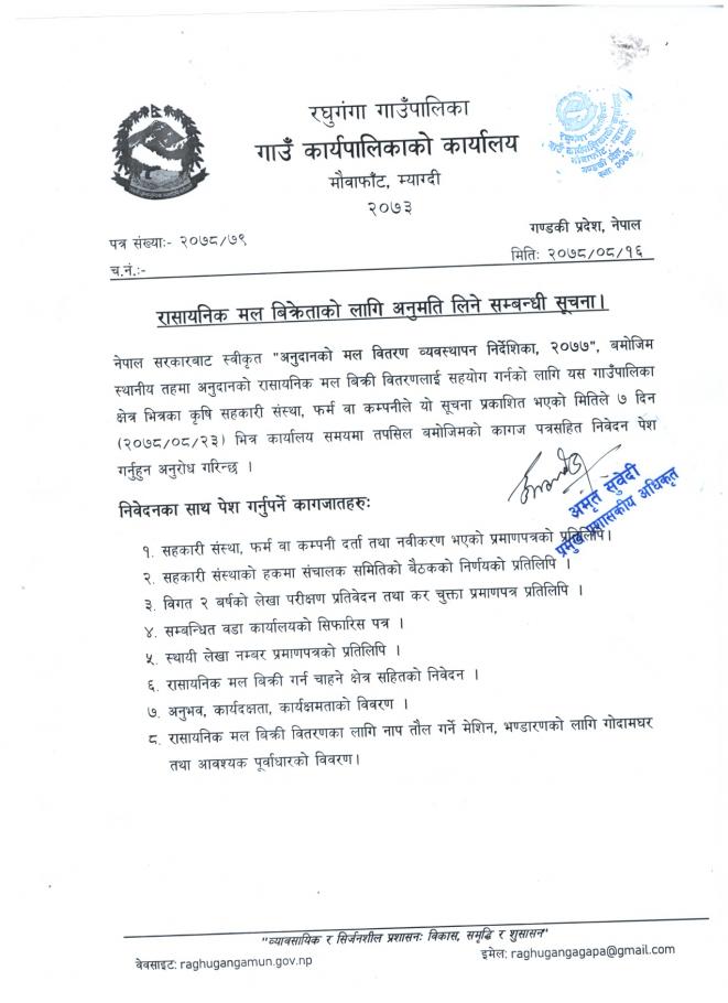 » रासायनिक मल बिक्रेताको लागि अनुमति लिने सम्बन्धी सूचना ।