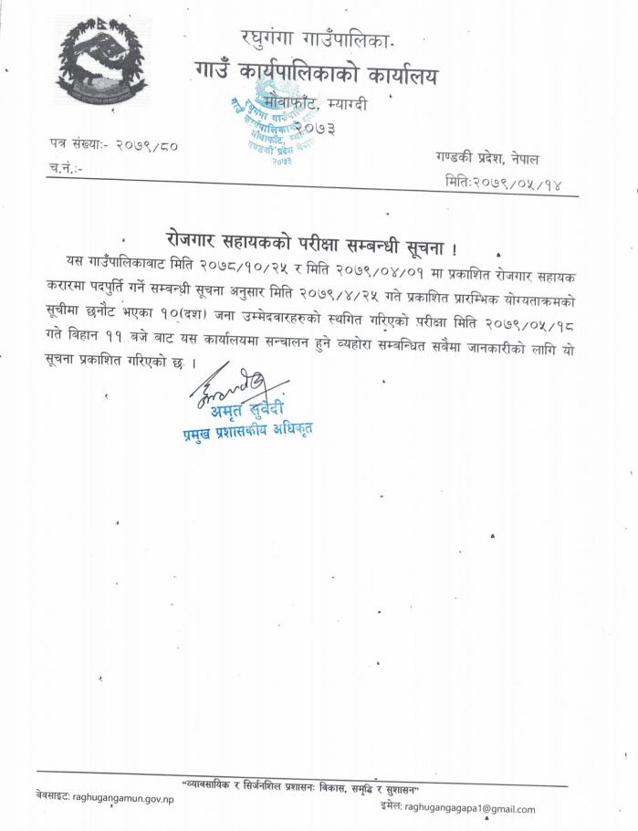 रोजगार सहायकको परीक्षा सम्बन्धी सूचना ।