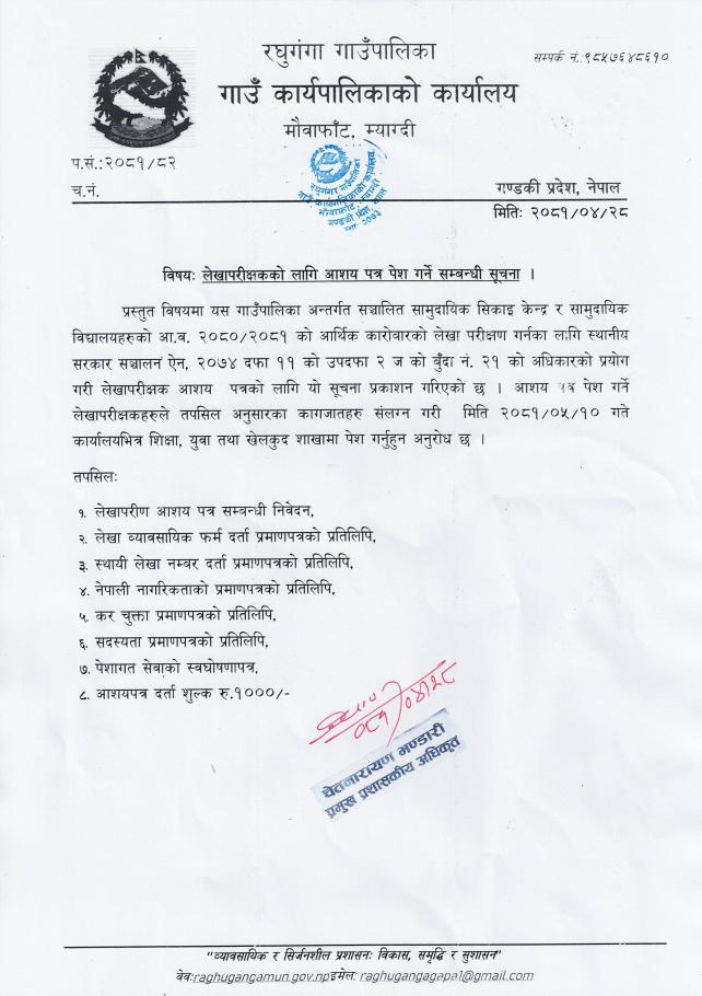 लेखापरीक्षकको लागि आशय पत्र पेश गर्ने सम्बन्धी सूचना ।