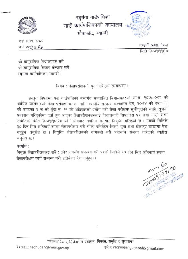लेखापरीक्षक नियुक्त गरिएको सम्बन्धमा ।