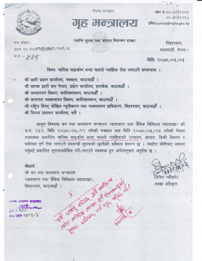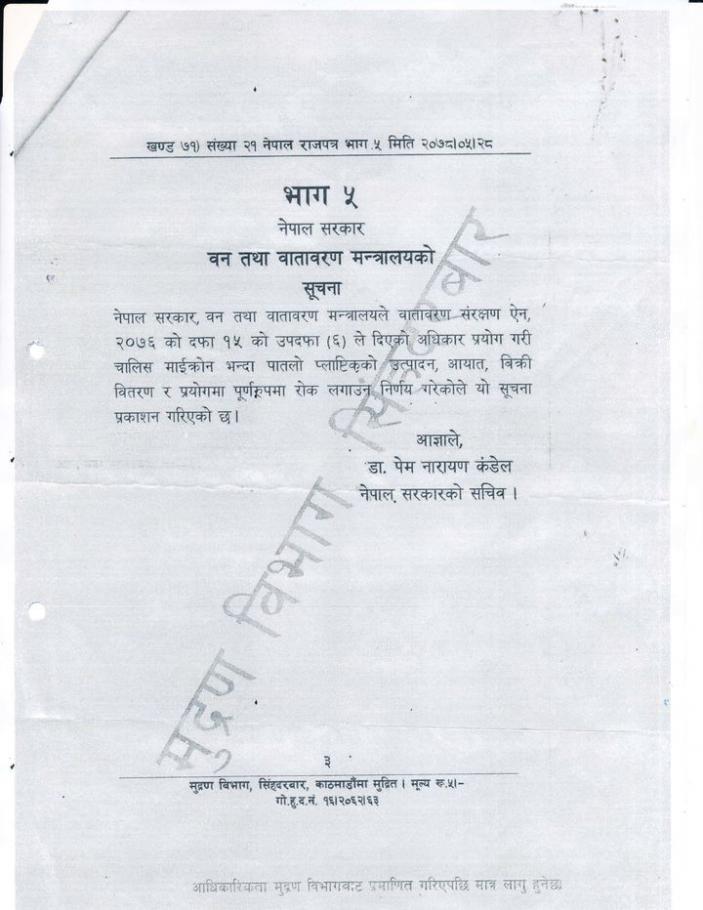 » वन तथा वातावरण मन्त्रालयको सूचना l