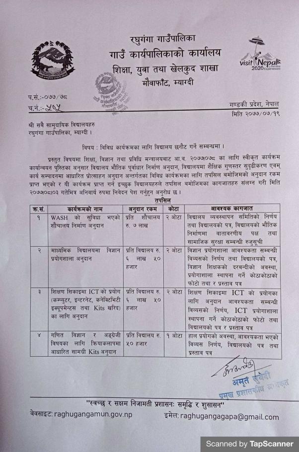 विविध कार्यक्रमका लागि विद्यालय छनोट गर्ने सम्बन्धमा l