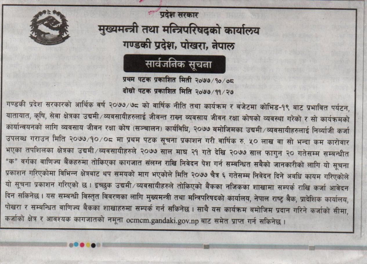 » व्यवसायी जिवन रक्षा कोषको सूचना l