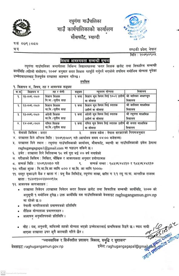 शिक्षक आवश्यक सम्बन्धी सूचना l