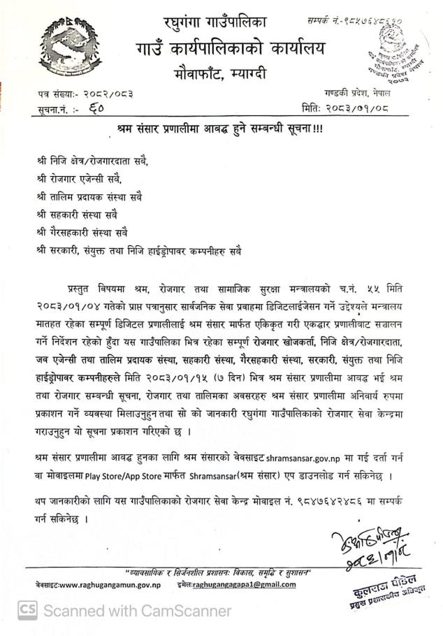 श्रम संसार प्रणालीमा आबद्ध हुने सम्बन्धी सूचना !!!
