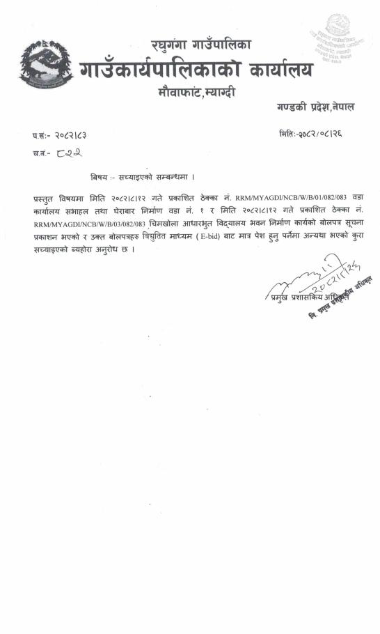 Invitation for electronic Bid Construction of the rural municipality office administrative building