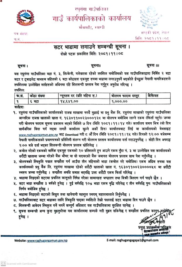 सटर भाडामा लगाउने सम्बन्धी सूचना !!!