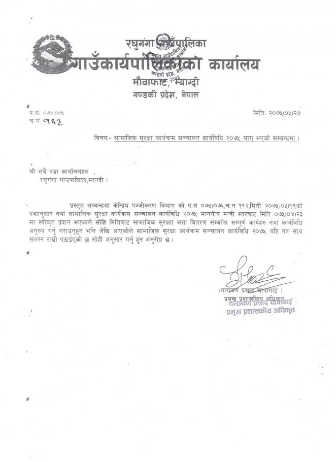 सामाजिक सुरक्षा कार्यक्रम संचालन करायाविधि २०७५ लागु भएको बारे l