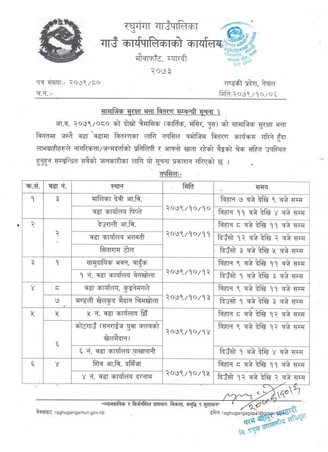 सामाजिक सुरक्षा भत्ता वितरण सम्बन्धी सुचना ।