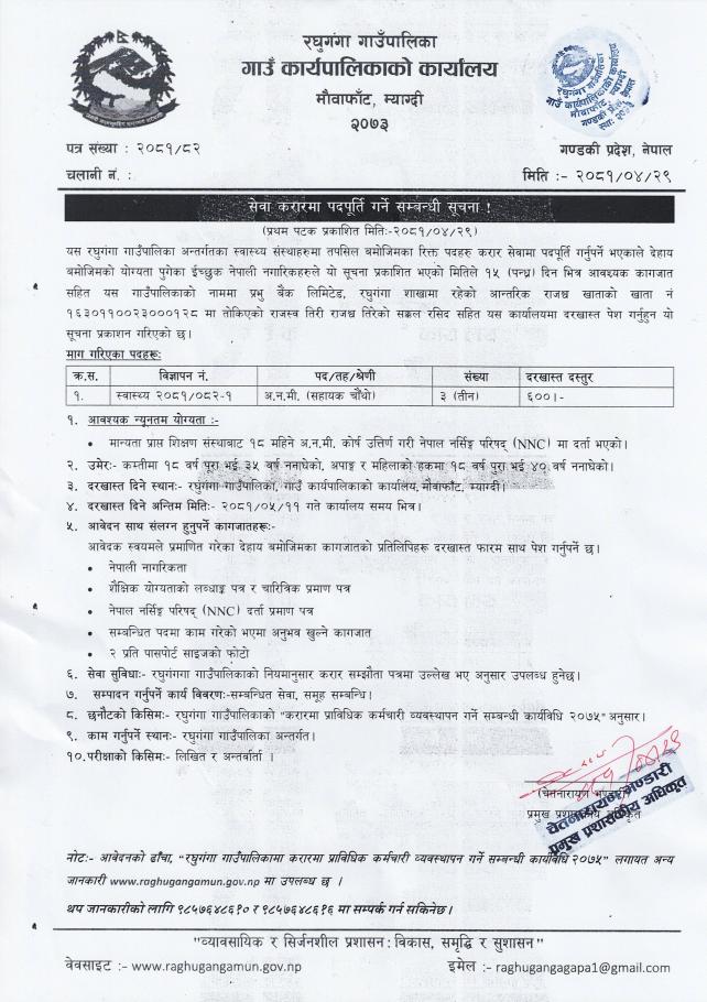 सेवा करारमा पदपू्ती गर्ने सम्बन्धी सूचना ।