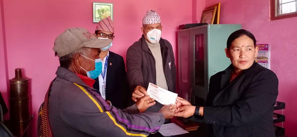 काेभिड १९ बाट मृत्यु भएका व्यक्तिकाे परिवारलाई राहत उपलब्ध गराउँदै अध्यक्ष ज्यू l